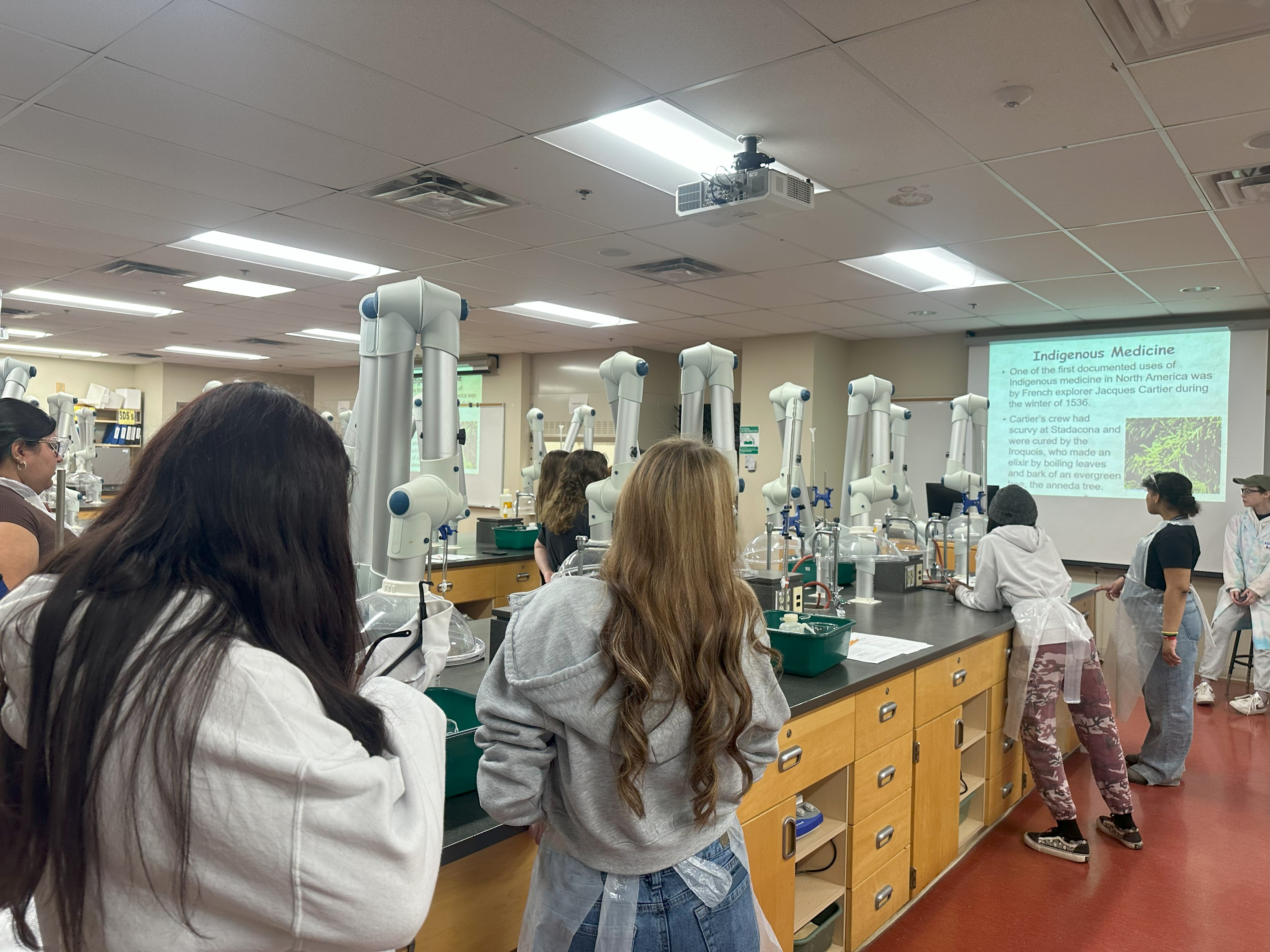 Camp participants at the X-Chem Session prepare to complete a titration with aspirin and learn about how chemically similar traditional Indigenous medicines have been made with plants.
