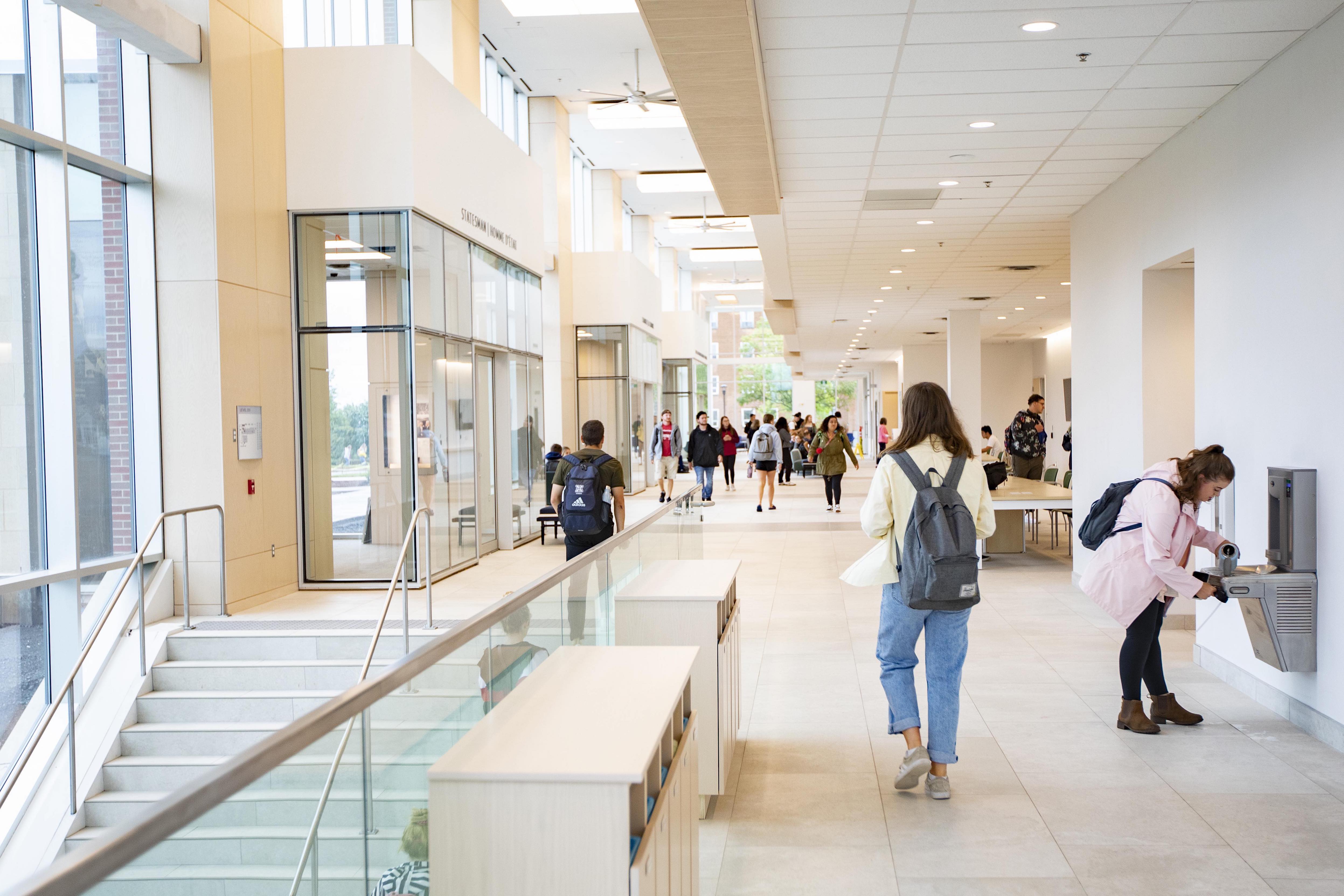 The Brian Mulroney Institute of Government is the most recent state-of-the-art complex on the StFX campus. This beautiful world-class educational and media facility opened in 2019. It features stunning gathering areas with floor-to-ceiling windows, flooding the spaces with natural sunlight.