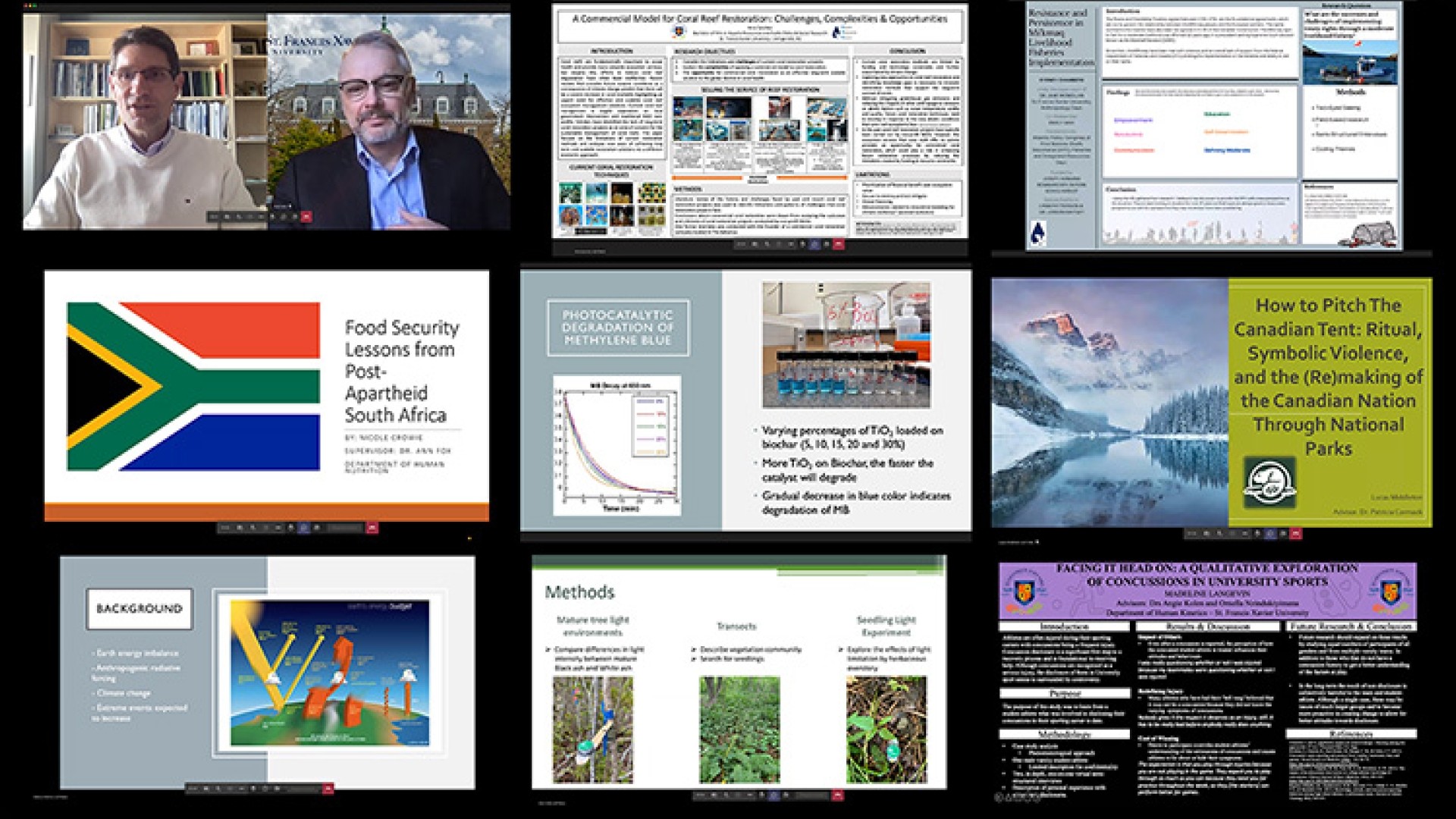 A broad range of research topics—from a light activated approach to water purification and improving the quality of drinking water in Canada’s Indigenous communities to COVID-19 denial among university students—were on display April 7th as 70 students showcased their work during the annual StFX Student Research Day.