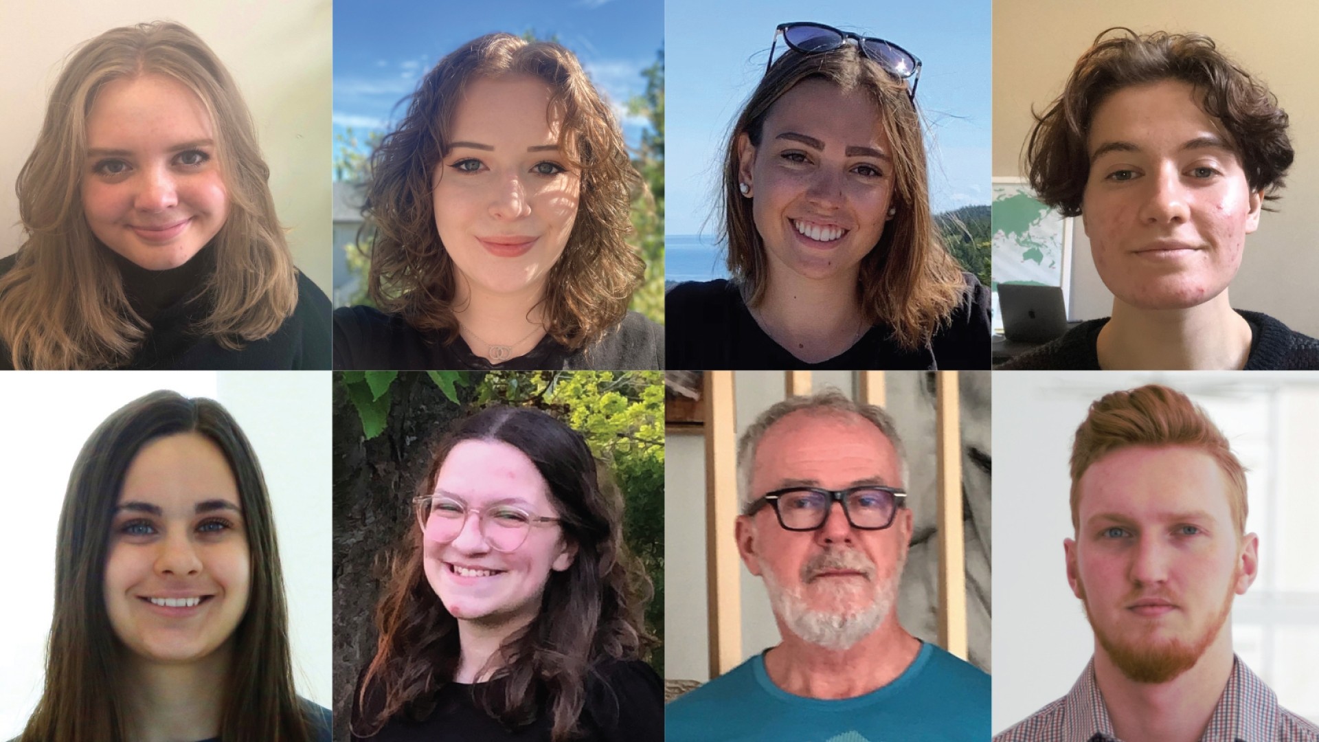 Irving Research Mentorship award recipients pictured include, top row, from left, Abbie Benjamin, Annie Chadwick, Elise Collet and Ethan Draper. Bottom row: Fiona Amos, Jocelyne LeBlanc, Ken Matheson, and Sam Poirier.