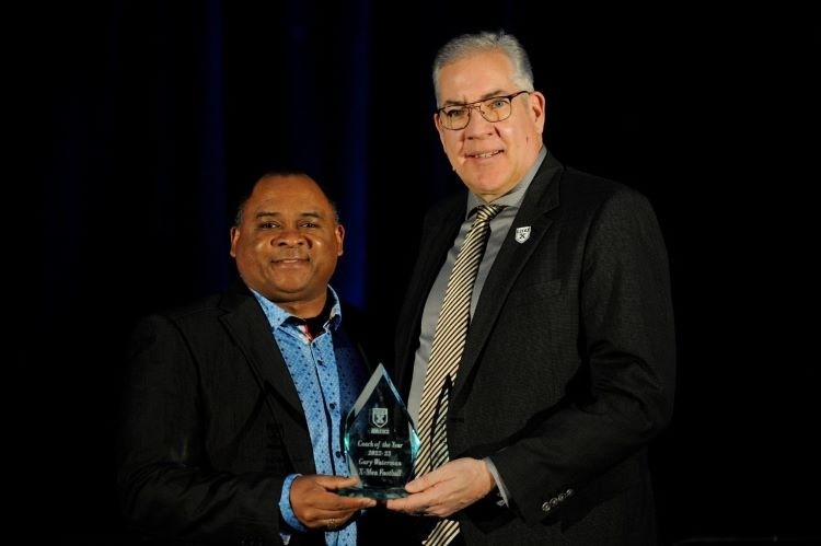 Gary Waterman is the winner of the 2023 StFX Coach of the Year award. In his 14th season behind the helm, Coach Waterman was awarded the AUS football coach of the year award for the fifth time in his career and for the first time garnered honours as the U SPORTS national football coach of the year. He led the X-Men to an undefeated 8-0 regular season record, first place in the conference standings and a 2-0 record in AUS postseason play, including winning the AUS championship banner for the second consecutive season. Coach Waterman’s X-Men hosted Saskatchewan in the U SPORTS national semifinal Uteck Bowl game, coming down to the wire in the fourth quarter in a close loss. In 2022, the X-Men finished fourth in the country in scoring (261) and led the conference in yards per game. Waterman's team also topped the AUS in points per game (32.6), yards per game (404.6), passing yards (1940), passing touchdowns (13), rushing touchdowns (13), field goals (16-22), sacks (27) and defensive interceptions (14). The StFX defence led U SPORTS in interceptions and was second overall in sacks. Thirteen of Waterman's players were named to the 2022 AUS all-star team.