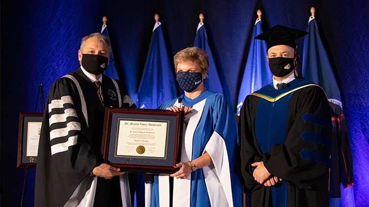 StFX celebrated achievement on Dec. 5, 2020 as the university graduated 240 students—conferring undergraduate and graduate degrees, diplomas, and certificates from across StFX’s four faculties—and honoured renowned judge, lawyer, volunteer and social activist Laurie Halfpenny MacQuarrie with the degree Doctor of Laws honoris causa.