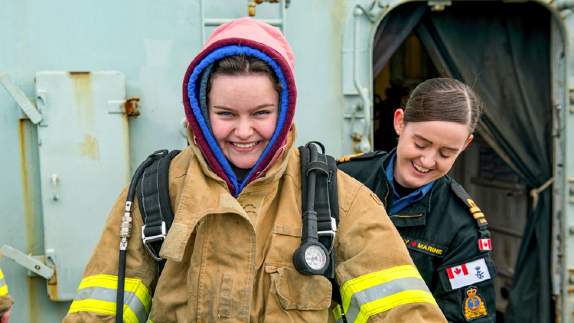 Over the course of a very full day, students visited the Navy’s Atlantic Operations Centre, Maritime Security Operations Center and Joint Rescue Coordination Centre to see how Canada’s governmental agencies monitor the country’s maritime approaches and manage search and rescue in the Atlantic. There was time for a walk-by of the new oiler Asterix as well as a tour of the dry-docked submarine HMCS Windsor and the patrol ship HMCS Moncton. To really show off the Navy’s capabilities, students spent the afternoon aboard the patrol frigate HMCS Ville de Québec, where high speed manoeuvers, boarding and firefighting demonstrations, as well as a tour of the ship’s operations room and bridge, brought to life Canada’s responsibilities – and capabilities – at sea.