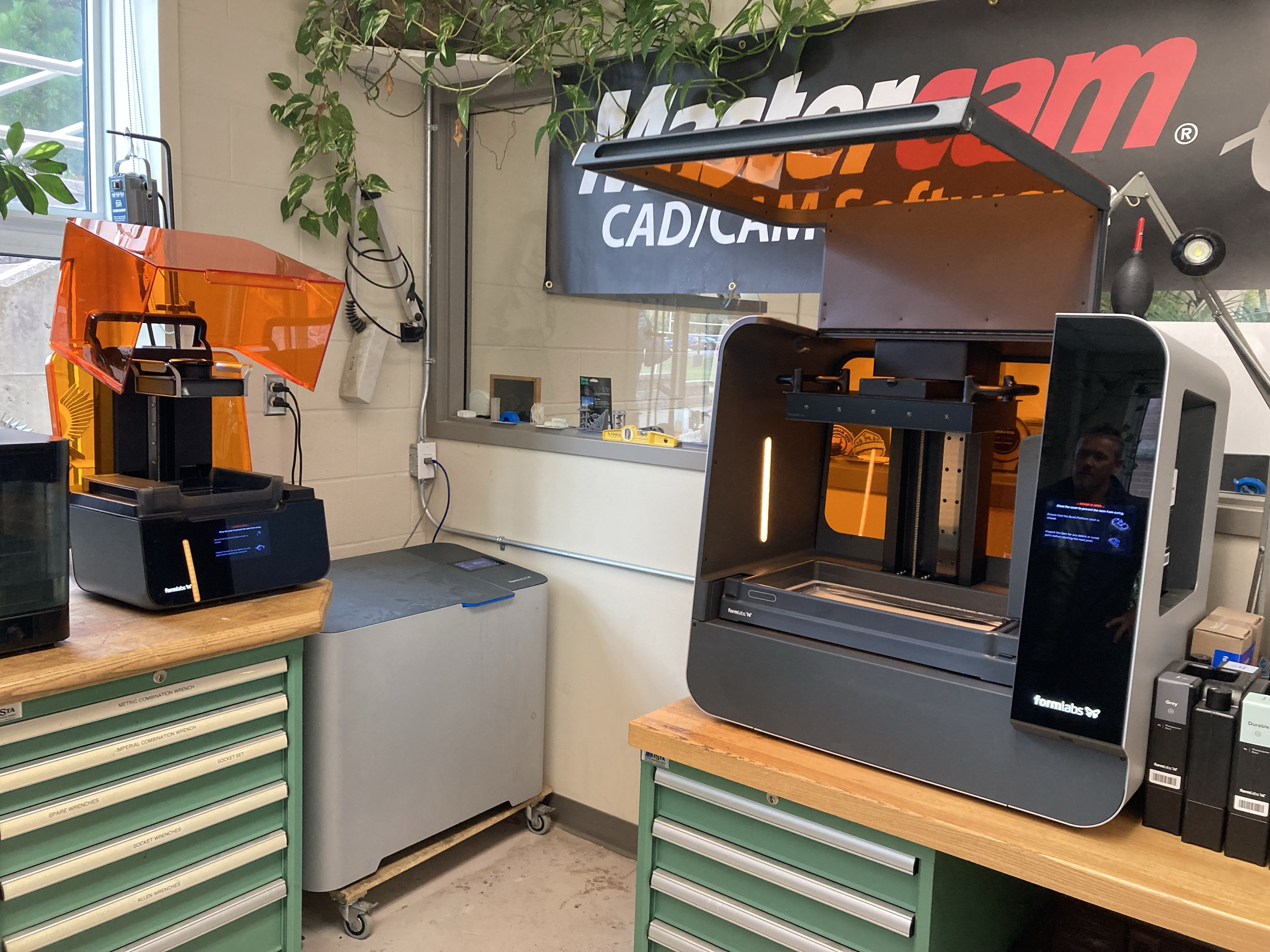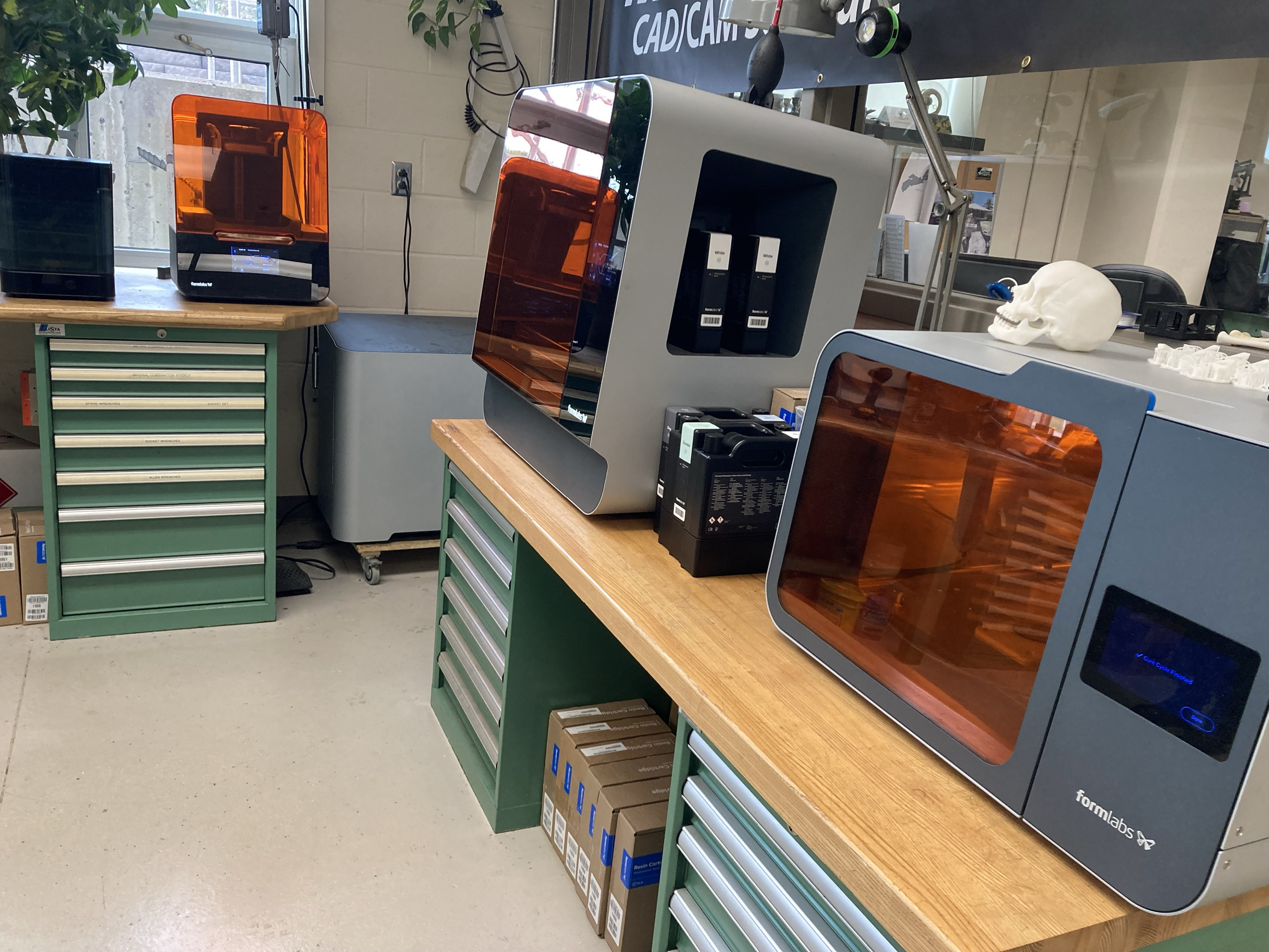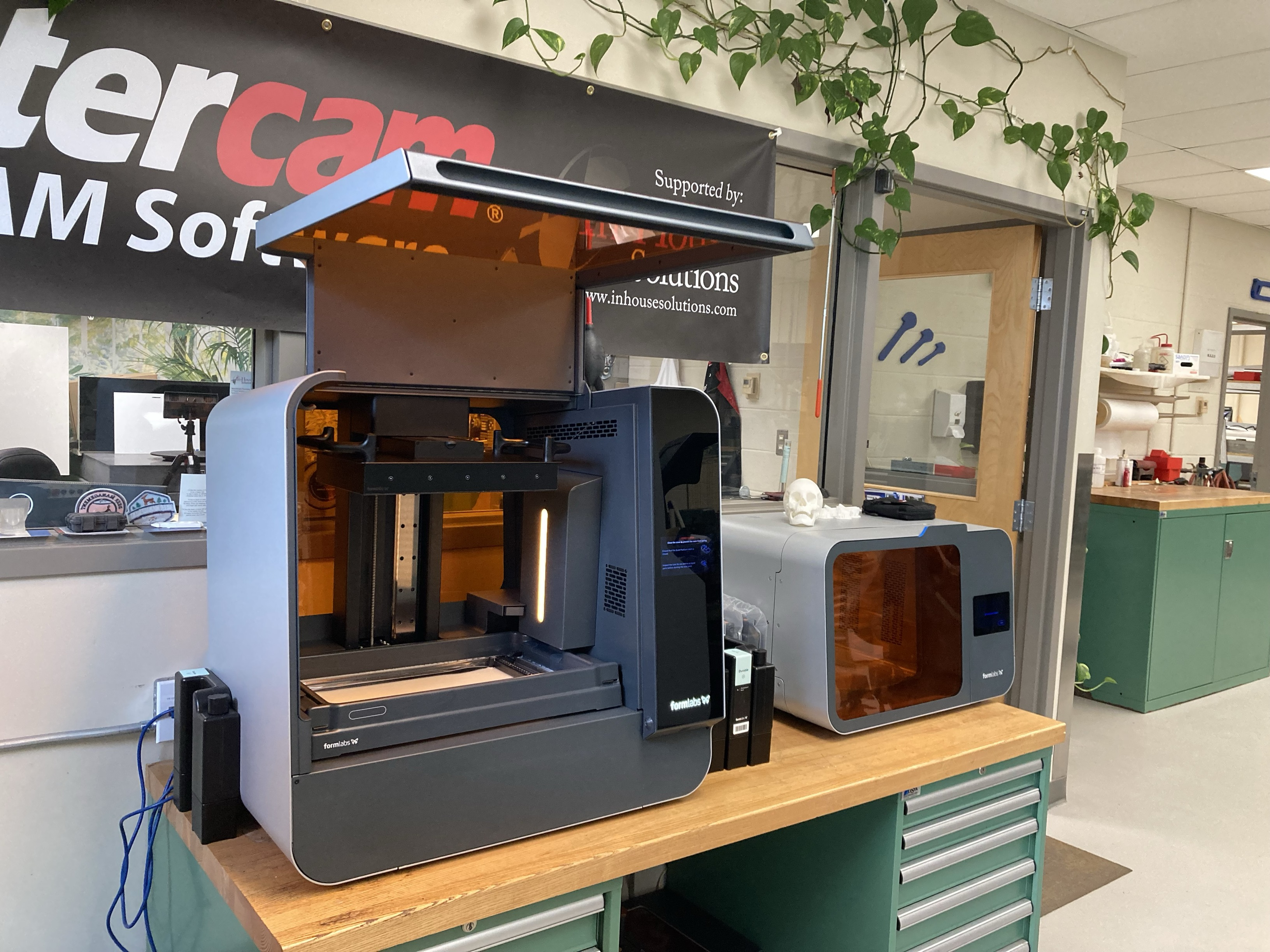 The StFX University Machine Shop is home to a new 3D printer that will enhance research and learning for the campus community. The multi-unit Formlabs system uses Stereolithography (SLA), a process in which a light source cures liquid resin, hardening it layer by layer. It can print many types of 3D models for professional and academic applications – from bone and muscle replicas to flow cells, robots, part replacements and engineering models. It is a fast and efficient printer with smooth surface finishes and high dimensional accuracy.